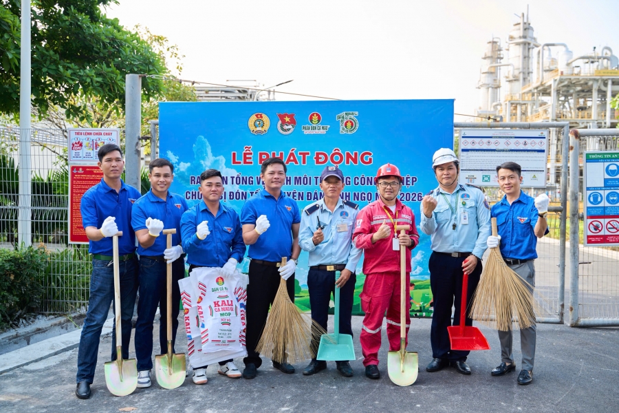 Tác phẩm: Lễ phát động ra quân tổng vệ sinh môi trường công nghiệp chuẩn bị đón Tết Nguyên đán năm 2026 của Đoàn Thanh niên và lực lượng nhân viên bảo vệ ANDK tại Nhà máy Đạm Cà Mau, nhằm nâng cao ý thức bảo vệ môi trường, xây dựng cảnh quan xanh – sạch – đẹp và đảm bảo an ninh, an toàn khu vực nhà máy.