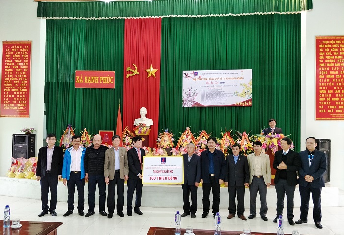 Đây là hoạt động thường niên đã được triển khai suốt 08 năm qua nhằm góp phần mang đến một cái Tết cổ truyền ấm áp, đầy đủ hơn cho những gia đình có hoàn cảnh khó khăn, gia đình thuộc diện chính sách, thể hiện truyền thống tốt đẹp của dân tộc: "uống nước nhớ nguồn", "lá lành đùm lá rách". Đồng thời khuyến khích động viên học sinh, sinh viên hiếu học cũng như công tác khuyến học tại hai xã Trường Sơn, huyện Đức Thọ, tỉnh Hà Tĩnh và xã Hạnh Phúc, huyện Thọ Xuân, tỉnh Thanh Hóa. Tại các buổi gặp mặt, đại diện lãnh đạo Tổng Công ty PTSC và các đơn vị thành viên, trực thuộc đã trao 300 suất quà Tết cho 300 hộ gia đình, mỗi suất quà trị giá 1.450.000 đồng, trong đó bao gồm một phần quà bằng hiện vật trị giá 450.000 đồng và tiền mặt 1.000.000 đồng; số tiền thực hiện cho quỹ Khuyến học là 200.000.000 đồng. Thăm và tặng quà Trung tâm điều dưỡng Người có công Thanh Hóa: tiền mặt 135.000.000 đồng và thùng quà 3.000.000 đồng. Tổng số tiền hỗ trợ là 773.000.000 đồng.