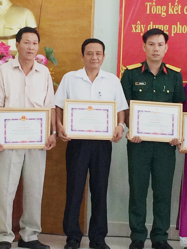 đại diện Đội Bảo vệ Tòa nhà PV Gas nhận giấy khen của UBND Huyện Nhà Bè